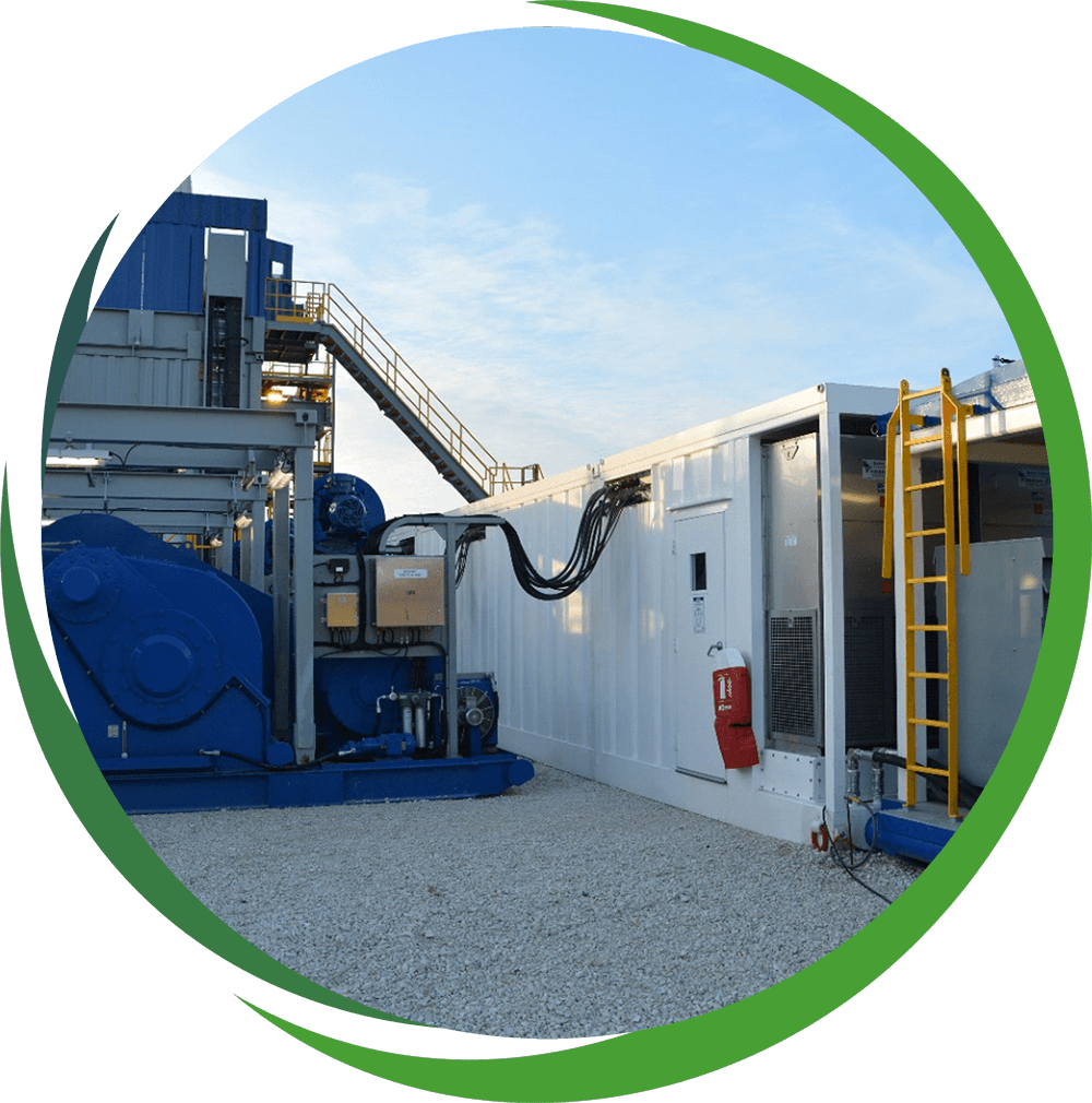The system provides storage of electrical energy using state of the art Lithium Ion LTO Batteries to load balance the engine operation on drilling rigs (drawworks peak shaving) and to optimize the number of running diesel generators in order to reduce fuel consumption and emissions.